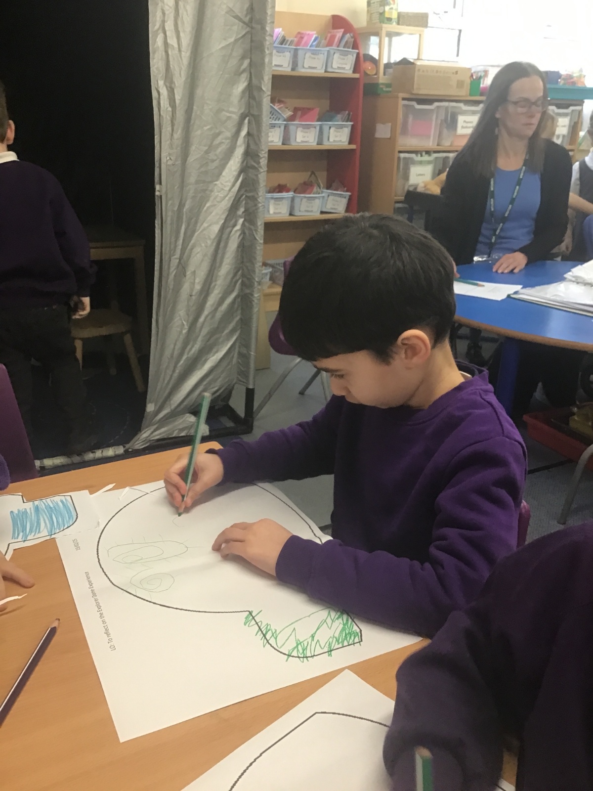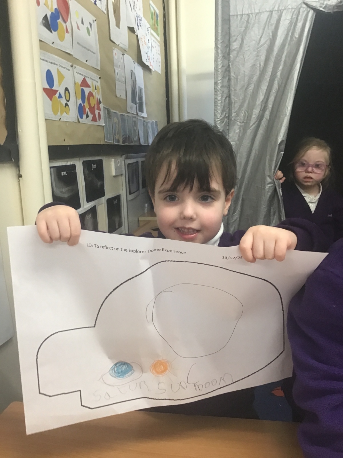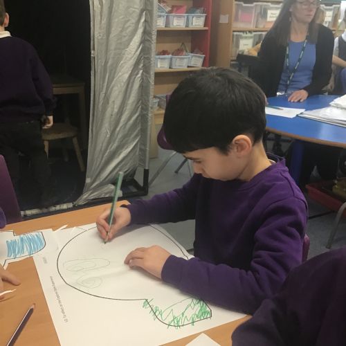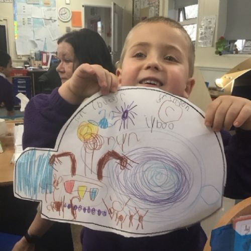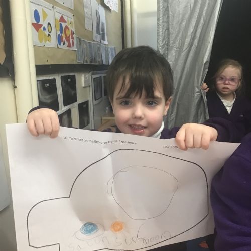 The children in Reception had a visit from the Explorer Dome. The children crawled inside the tunnel into the dark dome, guided by some twinkly lights. When inside, they saw some photos of the planets, the moon and nebulas. Next they learnt all about the stars and constellations. When we returned to school, the children drew pictures of what they saw inside the space dome.
